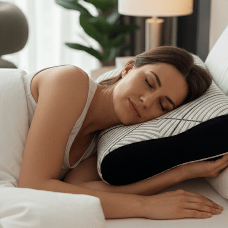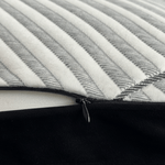 Con un diseño moderno de líneas diagonales y una funda de tejido de punto que aporta suavidad y frescura, esta almohada no solo es visualmente atractiva, sino que también favorece la circulación del aire. Al retirar la presión, la almohada vuelve a su forma original, recuperando íntegramente la totalidad de su volumen. El packaging de esta almohada 100% reciclable.