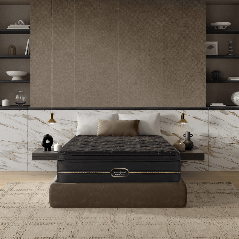 Los estándares más altos del diseño y las nuevas tecnologías de la línea Beautyrest® se combinan en Beautyrest® Black Soft para lograr la sinergia perfecta entre lujo, confort e innovación: La fusión entre 100 años de investigación aplicada al descanso y el refinamiento distintivo de la línea. Beautyrest® Black Soft no sólo se destaca por su altura imponente de 34 cm de altura y lujo exterior, sino que también impacta por su interior: espumas especiales con Micropartículas de Diamante, difusión de partículas de gel frío, Aircool® Memory Foam y su base 100% de resortes Beautyrest® Plus. Se amolda al cuerpo, proporcionando soporte personalizado y reduciendo al mínimo puntos de presión y transferencia de movimiento.