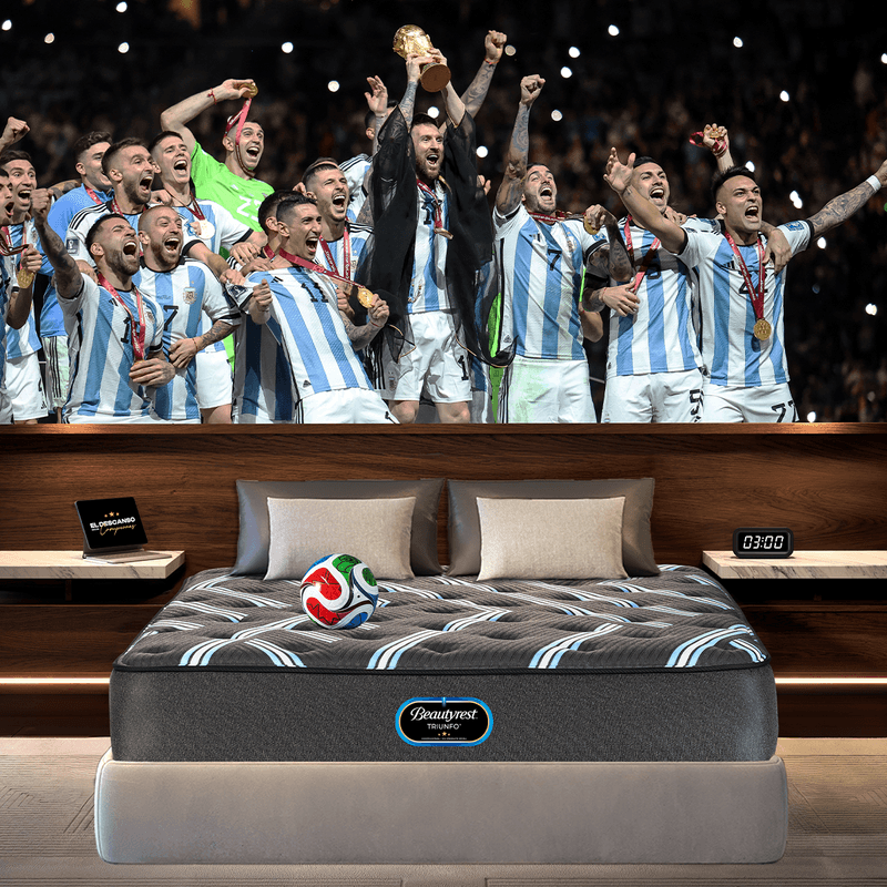 Inspirado en el alto rendimiento de la Selección Argentina, este modelo está construido sobre una estructura de resortes enfundados Beautyrest Originales, con una doble línea de Resortes Beautyrest Plus en los laterales. Todo este sistema se apoya en el BlockFoam®, una manta de espuma de alta densidad y dureza. Beautyrest TRIUNFO ha sido desarrollado a partir de una intensa investigación científica de las necesidades del cuerpo humano y su relación con el sueño reparador y revitalizante.