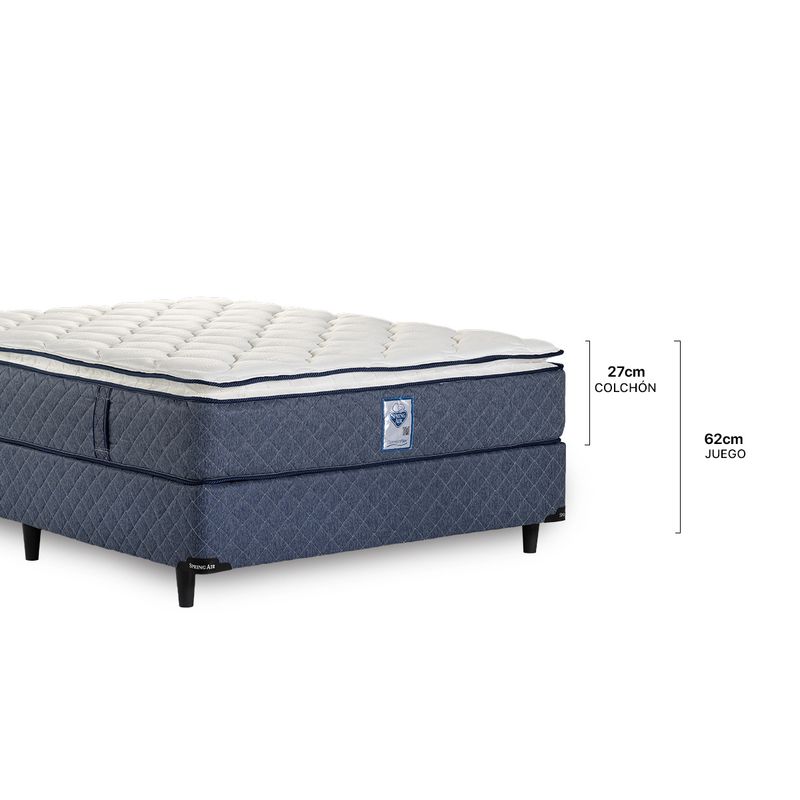 ¿Sabías que Spring Air inventó el pillow top? Four Seasons Medium contiene un pillow top de espuma viscoelástica que otorga una suavidad adicional única. El producto se construye de abajo hacia arriba. La base de resortes enfundados otorga la firmeza para que el cuerpo descanse en la posición correcta y el pillow top de la superficie brinda confort y suavidad adicionales.